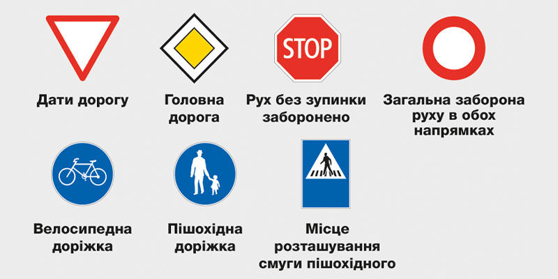 Дотримуйтеся знаків і поступайтеся дорогою.