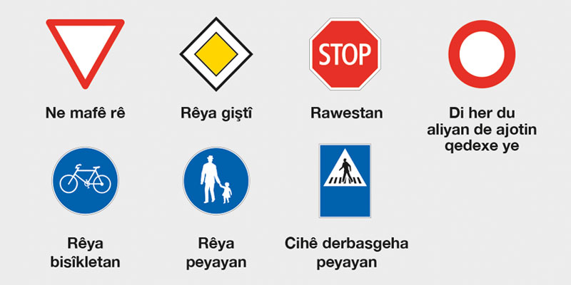 Îşaret nîşan dide ku kê rê heye û li ku derê destûr heye ku hûn ajotinê bikin. Ew jî xetereyan nîşan didin.