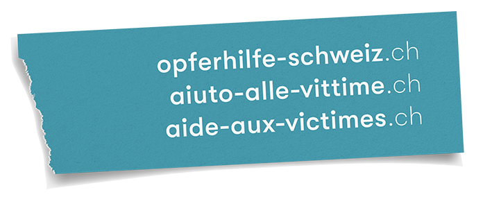 Per ottenere una consulenza gratuita, confidenziale e anonima, vi invitiamo a contattare il servizio Aiuto alle vittime di reati. Il servizio vi informa inoltre sulle possibilità di intentare un’azione penale, senza rivolgervi subito alla polizia e vi accompagna nei passaggi successivi.
